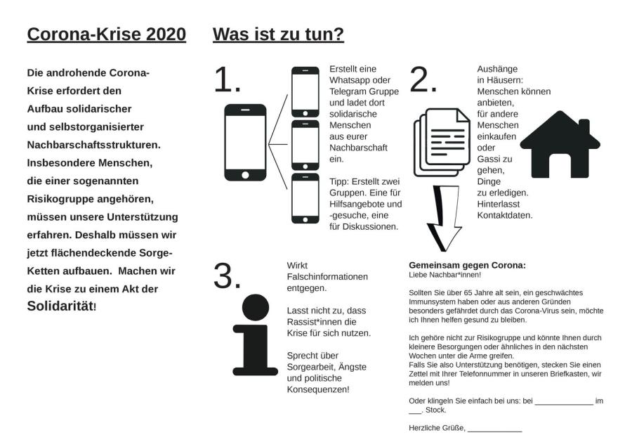 Wir möchten diesen Aufruf auch dazu nutzen, gute und kreative Ideen zu Hilfen aufzugreifen und im Sinne einer guten